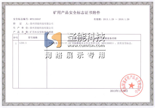 GZD0.5礦用本安型稱重傳感器煤安證——圣能科技 時間:2015-06-11 分類:榮譽證書 型號規(guī)格:GZD0.5 持證人:徐州圣能科技有限公司 產品名稱:礦用本安型稱重傳感器 上一篇: ICS-ST-Z礦用隔爆兼本安型皮帶秤主機專利——圣能科技下一篇: ICS-ST礦用電子皮帶秤檢驗報告——圣能科技 相關文章 BQH5礦用本安型編碼器檢驗報告——圣能科技 BQH5礦用本安型編碼器煤安證——圣能科技 BQH5礦用本安型編碼器專利證書——圣能科技 GZD0.5礦用本安型稱重傳感器防爆合格證——圣能科技 GZD0.5礦用本安型稱重傳感器檢驗報告——圣能科技 KJ927產量監(jiān)控系統(tǒng)煤安證——圣能科技 ICS-ST礦用防爆電子皮帶秤煤安證——圣能科技 ICS-ST礦用電子皮帶秤檢驗報告——圣能科技